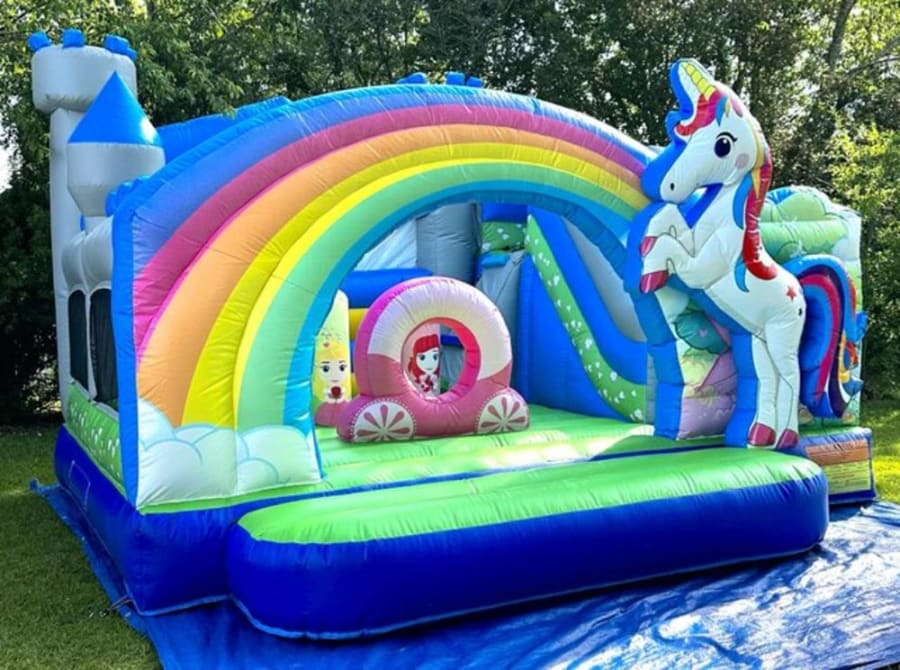 The Unicorn Bounce with Slide offers a spacious bouncing area where kids can jump and play to their heart's content. The attached slide provides an extra element of excitement, allowing children to glide down into an adventure-filled landing.